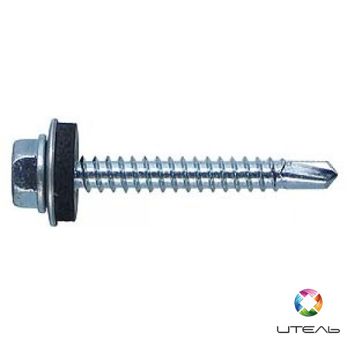 Стальные кровельные саморезы с шестигранной головкой , сверловидным наконечником, укомплектованные шайбой с резиновой прокладкой, для крепления кровельных материалов, металлочерепицы, профнастила и т.д. к деревянной обрешетке.
